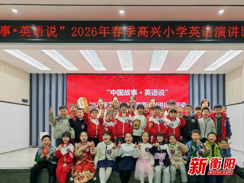 教學(xué)改革的最終落腳點(diǎn)是學(xué)生。今年3月,高興小學(xué)“中國(guó)故事·英語(yǔ)說(shuō)”主題活動(dòng)上,120名學(xué)生用流利的英語(yǔ)講述傳統(tǒng)故事演繹經(jīng)典劇目,展現(xiàn)了出色的語(yǔ)言綜合運(yùn)用能力與跨文化交際意識(shí)。更可喜的是,全區(qū)382名學(xué)生成功晉級(jí)2026年衡陽(yáng)市ESDP演講比賽復(fù)賽,排名居全市榜首。