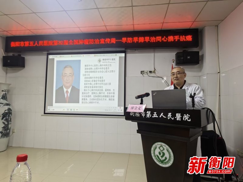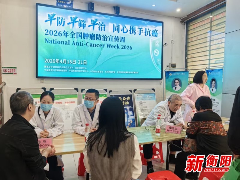 衡陽新聞網訊 通訊員房亮報道 4月16日上午,第32屆全國腫瘤防治宣傳周主題活動在衡陽市第五人民醫(yī)院順利舉辦?;顒泳o扣“早防早篩早治 同心攜手抗癌”主題,以健康講座、多學科義診、疑難病例查房等形式,助力基層群眾樹立科學防癌理念、提升自我健康管理能力。作為衡陽市癌防中心依托單位,衡陽市中心醫(yī)院組建了一支涵蓋胃腸外科、心胸外科、腫瘤內科等多個重點??频母咚綄<谊犖閰⒓踊顒?,切實把防癌知識、診療服務送到群眾“家門口”。