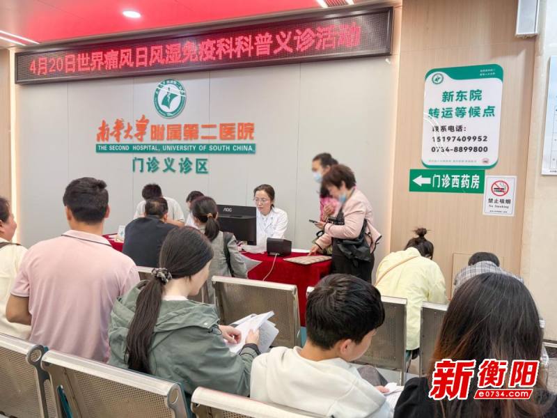 衡陽新聞網(wǎng)訊 通訊員張靚報(bào)道 在“4·20全民關(guān)注痛風(fēng)日”來臨之際,南華大學(xué)附屬第二醫(yī)院風(fēng)濕免疫科于4月20日在門診一樓大廳舉辦了一場(chǎng)以“標(biāo)本兼治,降尿酸抗炎雙達(dá)標(biāo)”為主題的公益義診及健康科普活動(dòng)。此次活動(dòng)旨在將痛風(fēng)及高尿酸血癥的防治知識(shí)送到群眾身邊,幫助更多人走出認(rèn)知誤區(qū),擁抱科學(xué)規(guī)范的診療路徑。