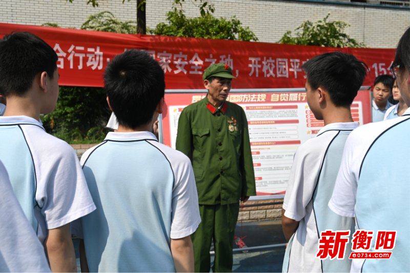 4月13日,在全民國家安全教育日來臨之際,衡陽市蒸湘區(qū)人武部聯(lián)合蒸湘區(qū)國動辦在蒸湘中學(xué)開展“安全種子進(jìn)校園”活動