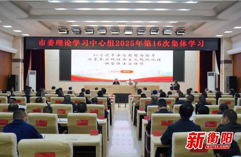▲集體學(xué)習(xí)現(xiàn)場(chǎng)。衡陽新聞網(wǎng)訊 記者王倩雯報(bào)道 12月3日下午,市委理論學(xué)習(xí)中心組(擴(kuò)大)舉行2025年第16次集體學(xué)習(xí),深入學(xué)習(xí)習(xí)近平法治