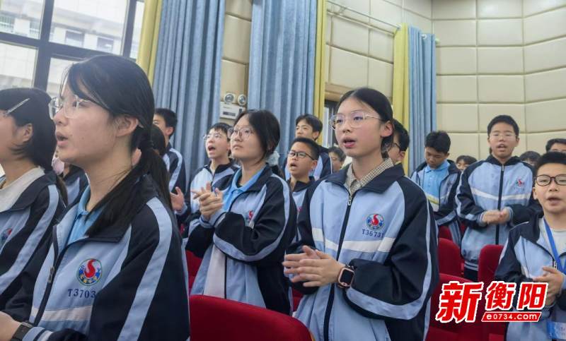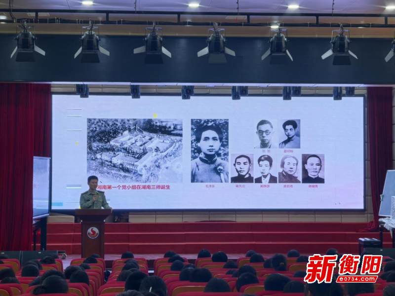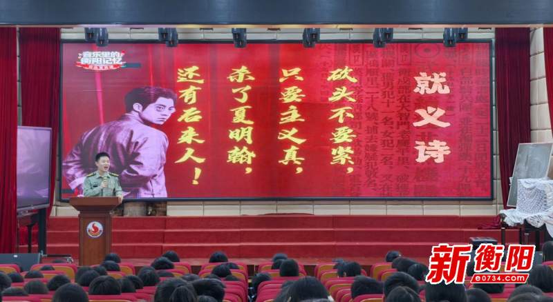 衡陽(yáng)新聞網(wǎng)訊 通訊員楊圣妮報(bào)道 為厚植紅色基因,賡續(xù)紅色血脈,引導(dǎo)青少年銘記革命歷史、傳承奮斗精神。4月23日,衡陽(yáng)市實(shí)驗(yàn)中學(xué)初一年級(jí)全體學(xué)子齊聚學(xué)校三樓報(bào)告廳,開(kāi)展“音樂(lè)里的衡陽(yáng)記憶”主題音樂(lè)黨史課活動(dòng)。本次活動(dòng)由尹湘萍主任擔(dān)任主持,特邀衡陽(yáng)市黨史館金牌宣講員賀亦韜主講,以經(jīng)典樂(lè)曲為載體,串聯(lián)百年奮斗征程,為全體學(xué)生帶來(lái)一場(chǎng)沉浸式紅色文化洗禮。