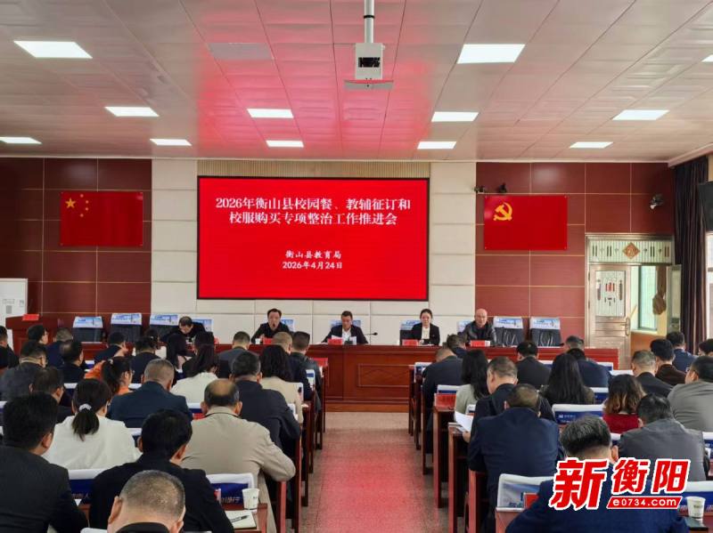 4月24日上午,衡山縣召開2026年“校園餐”、教輔征訂、校服購買專項(xiàng)整治工作推進(jìn)會(huì)。